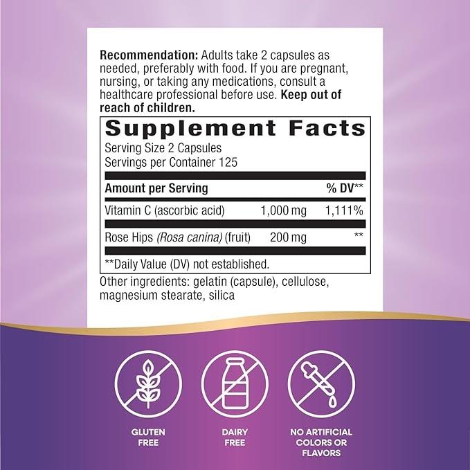 La Vitamina C 1,000 mg con Rosa Mosqueta Nature´s Way ofrece una potente sinergia natural para brindarte protección antioxidante y apoyo al sistema inmune. La vitamina C, o ácido ascórbico, fomenta la producción de colágeno, contribuye a la reparación de tejidos y actúa como un poderoso escudo frente a los radicales libres. Por su parte, la rosa mosqueta es conocida por sus altas concentraciones de vitamina C adicional y otros nutrientes que complementan su acción fortalecedora y revitalizante.